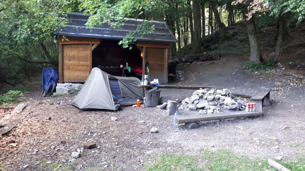 Vonku sa postupne stmieva a tak rozmýšľame, ako riešiť túto noc spánok. Rozhodujeme sa vyskúšať podľa mapy nie veľmi vzdialenú Ámonovu lúku, čo sa ukazuje ako výborné rozhodnutie. Lúka je veľká a na kraji má prístrešok vhodný na prenocovanie s ohniskom a studničkou, my si však radšej staviame stan, hneď vedľa prístrešku. Po pár minútach prichádza trojica ľudí, tiež hľadajúca nocľah, im nakoniec prístrešok dobre slúži. Dávame sa do reči a zisťujeme, že oni sa rozhodli toto leto absolvovať cestu hrdinov SNP. Pri ohníku sa pýtame na rady a skúsenosti a neskôr počas výletu často rozmýšľame, kde sa asi títo pútnici práve asi môžu nachádzať. Nakoniec unavení pri tlmenom zvuku ich rozhovoru zaspávame, v lesnom tichu sa spí veľmi dobre.