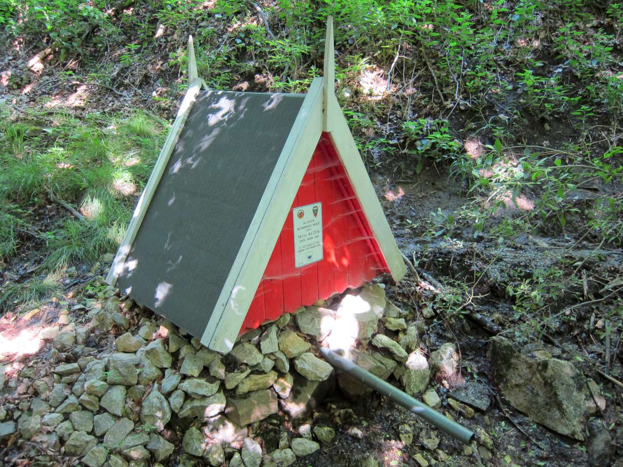 Výlet prebiehal v poriadku a boli sme si istí, že máme pred sebou dva kvalitné pramene, ktoré sme spoznali podobne ako plot na nedávnom cyklovýlete. Do fliaš sa nám zmestilo spolu 2,5 litra vody, takže sme museli viackrát počas dňa hľadať pramene. Prvý prameň bol neďaleko križovatky značiek s názvom Hubálová. Posedeli sme si pri ňom, vypili veľa vody a pre istotu naplnili fľaše doplna, aj keď ďalší zdroj vody mal byť už o necelú hodinu. Tento prameň máme radi, už 2x nám veľmi pomohol. Píše sa na ňom: "Milovníkom malokarpatskej prírody venuje Milan Ružek, turista - značkár z Modry. Bez vody nemôže byť život. Chráňme tento prameň života." Ďakujeme týmto pánovi Ružekovi :)
